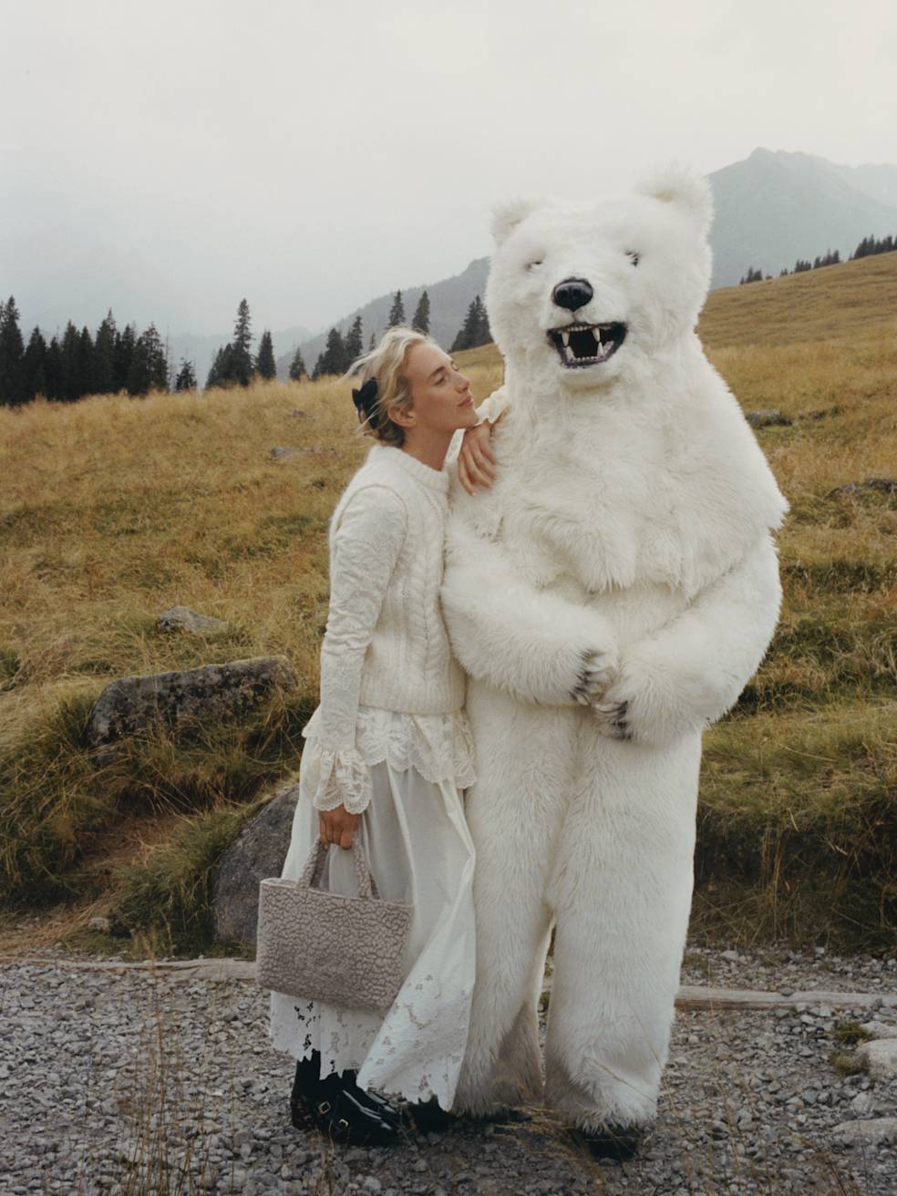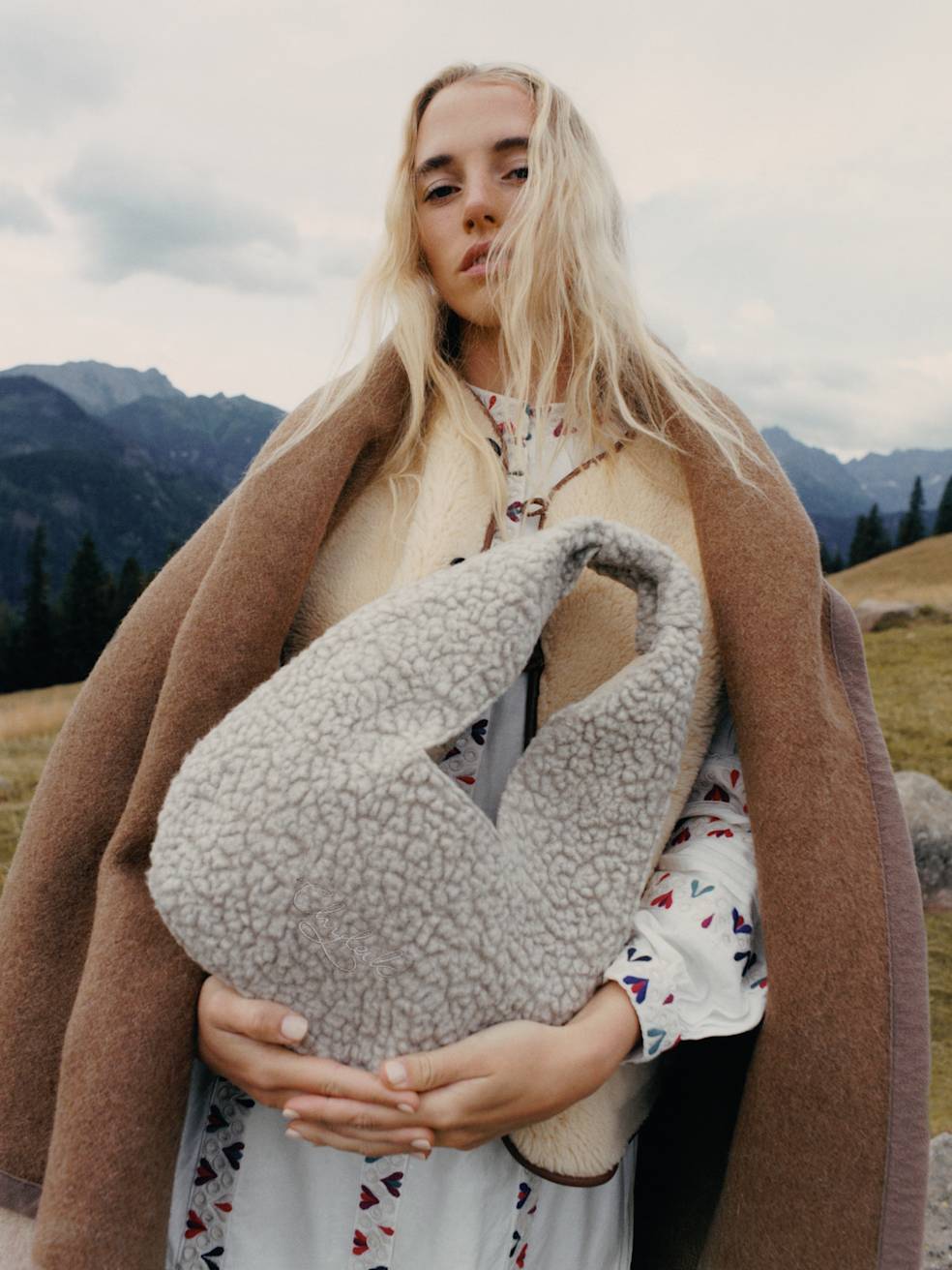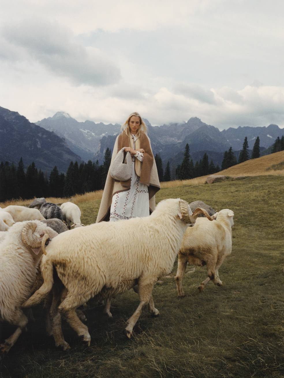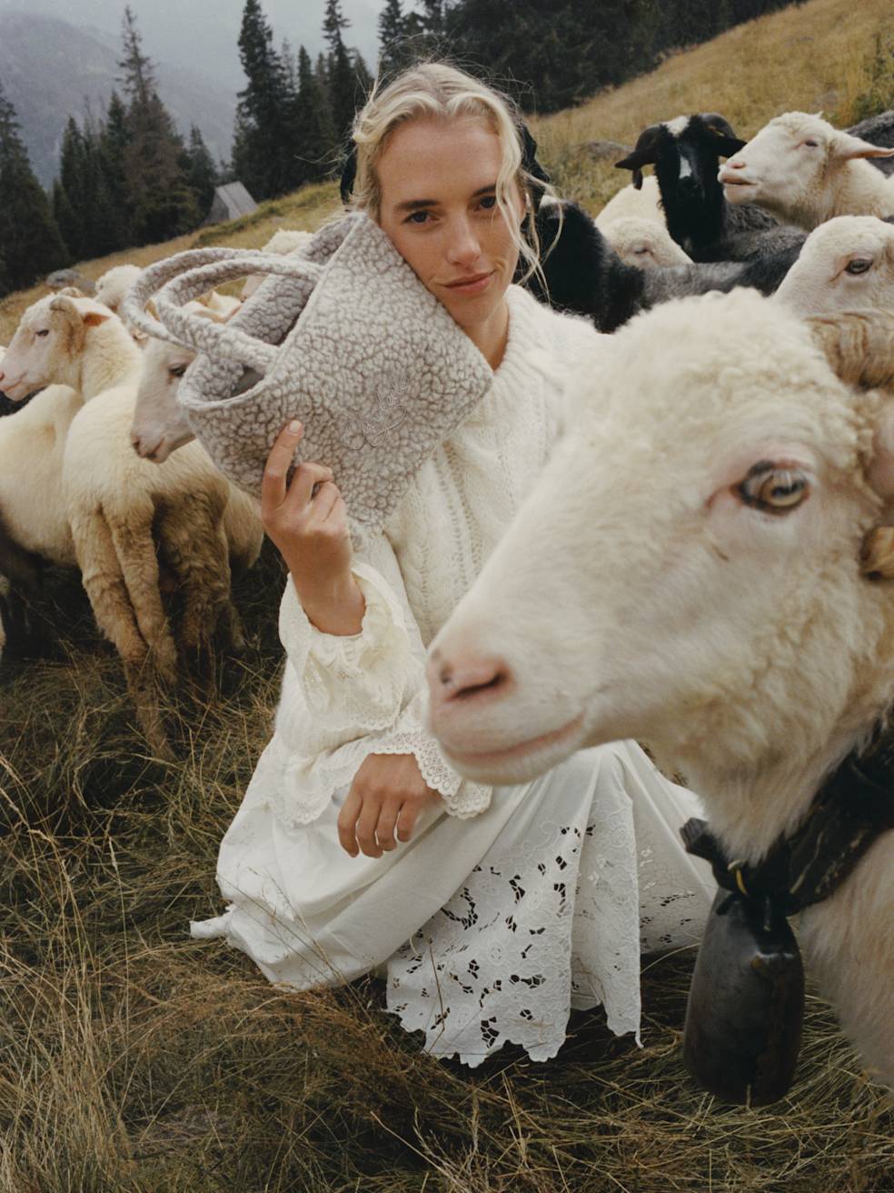 We shot our latest campaign in the Polish Tatra mountains. It was inspired by the extraordinary tradition of “Redyk,” a ceremonial trailing of sheep from their mountain pastures for the winter. The atmosphere of the ritual also prompted me to create bags constructed from Bouclé fabric, a blend of recycled cashmere and ethically sourced mulesing-free wool.