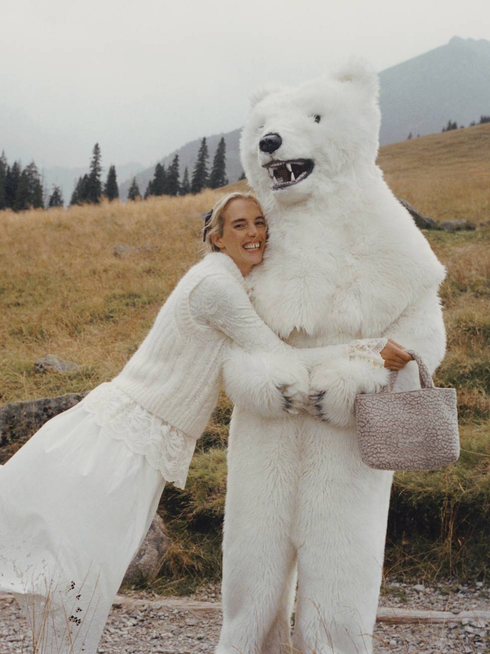 Zakopane's famous giant bear, a true symbol of the mountain resort, also made an appearance in our campaign. Nearly everyone who's ever vacationed in the Polish mountains as a child has a picture with the bear in their family album. We couldn't have our shoot without him.