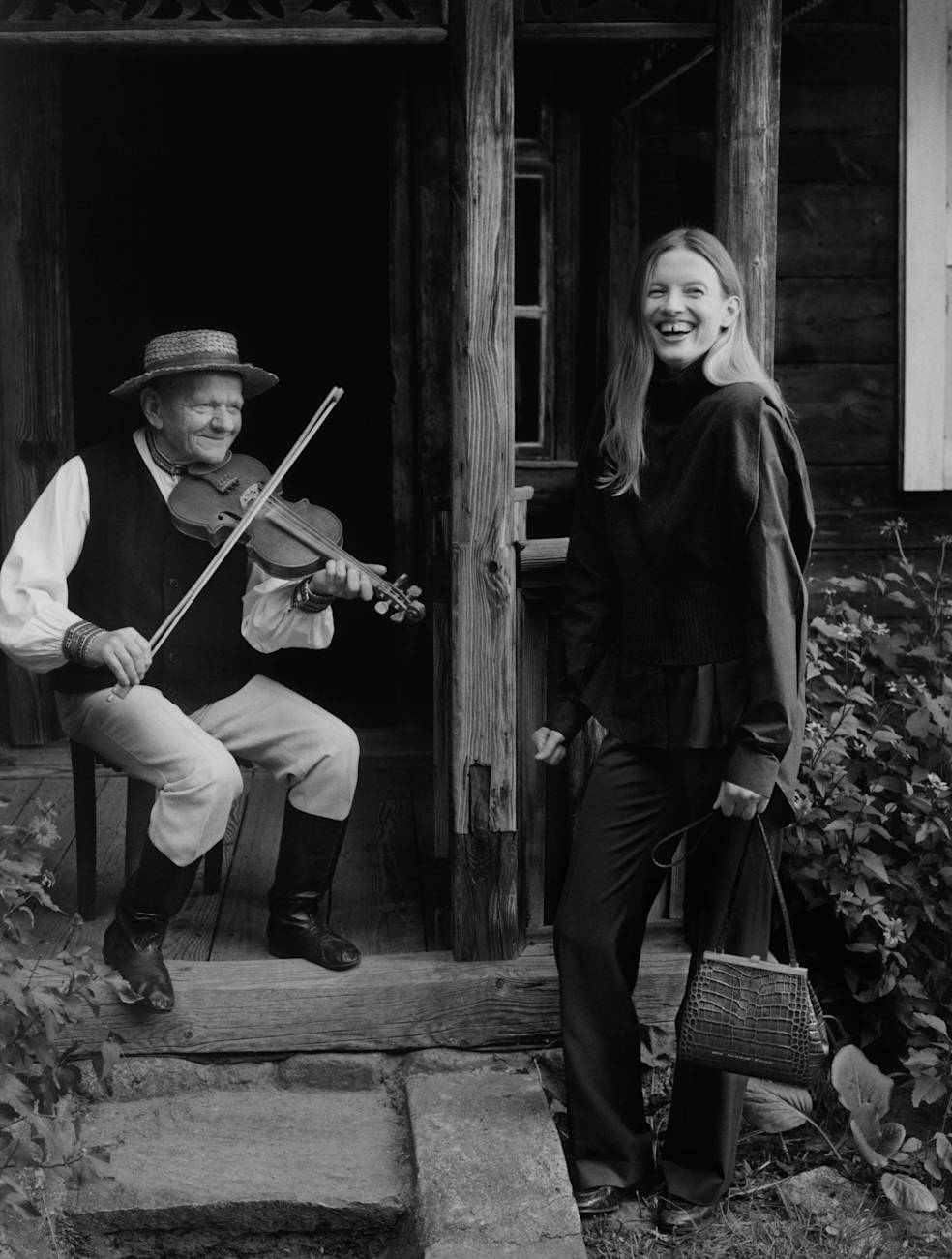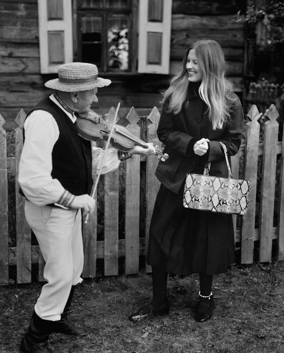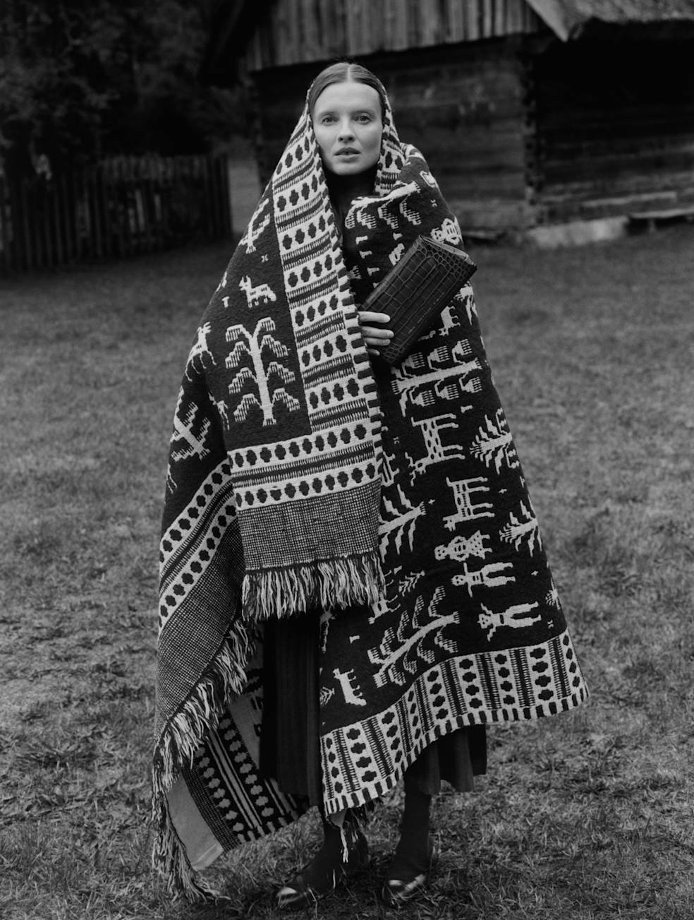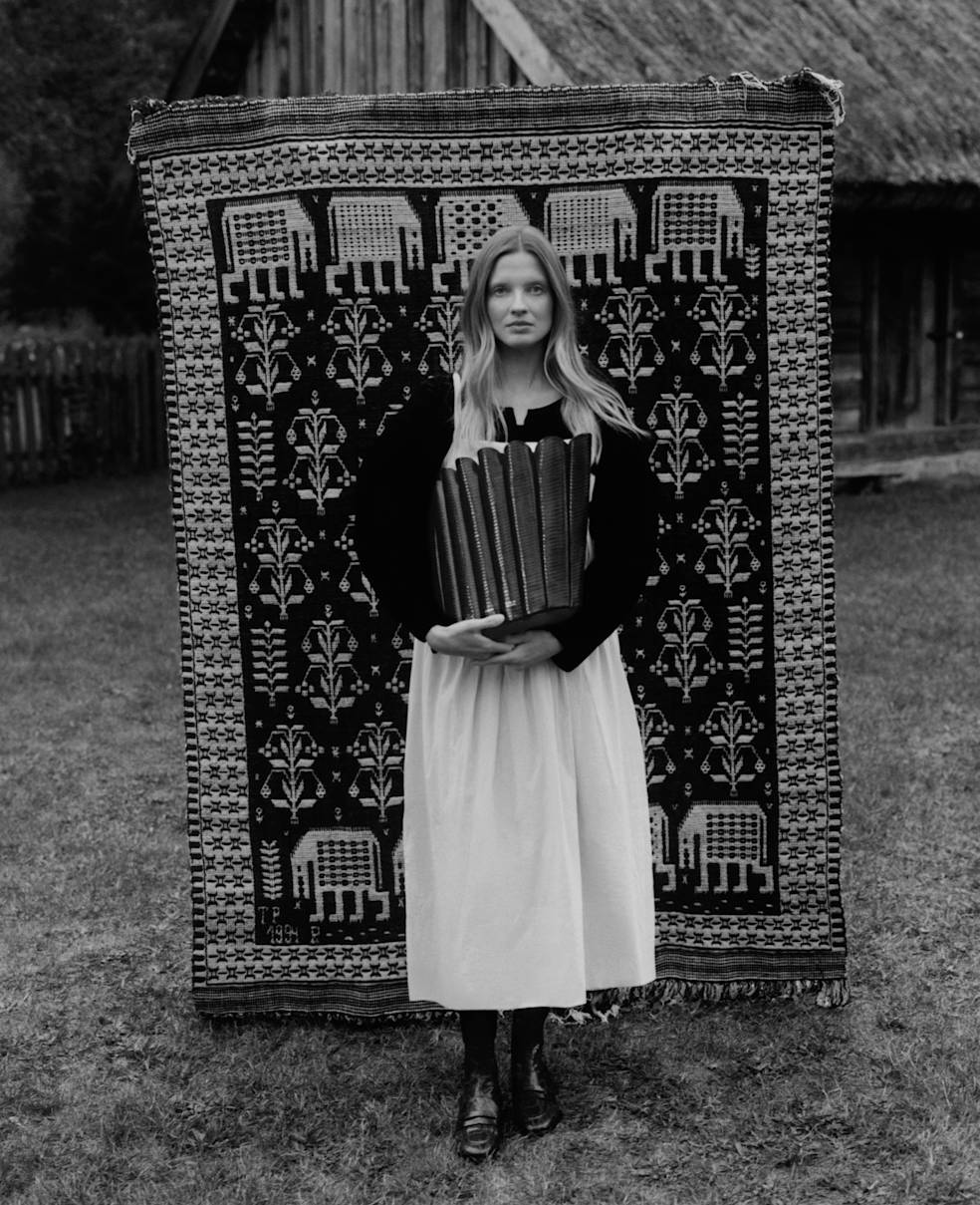 Nasza najnowsza kampania przenosi nas na Podlasie, do tradycji tworzenia tkanin dwuosnowowych. To tam, na starych drewnianych krosnach, przekazywanych z pokolenia na pokolenie, niezwykle wprawne tkaczki tworzą piękne tradycyjne tkaniny. Motywem przewodnim kolekcji są skóry tłoczone we wzory „pytonów”. Formy torebek są proste, klasyczne, ale charakterystycznym elementem są mocne tłoczenia. Nasunęły nam one skojarzenie z gęsto wypełnionymi wzorami tkaninami.