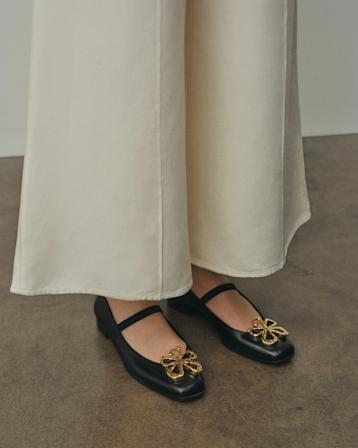 Przedstawiamy baletki z dekoracyjną klamrą w kolorze starego złota. Jej organiczny kształt nawiązuje do sękacza - tradycyjnego ciasta ze wschodniej Polski.