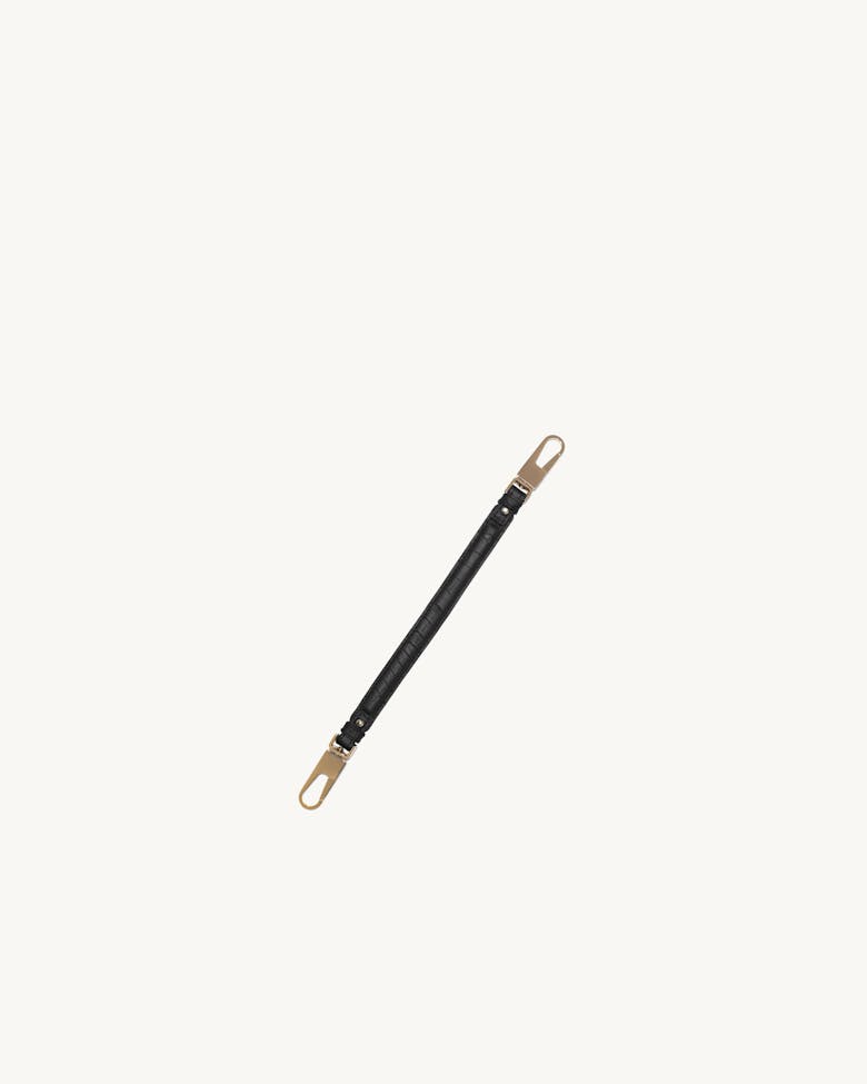 Mini strap made of crocodile-embossed leather. Detachable with metal golden carabiners. Perfect addition to our Shoulder Bag “black crocodile”.