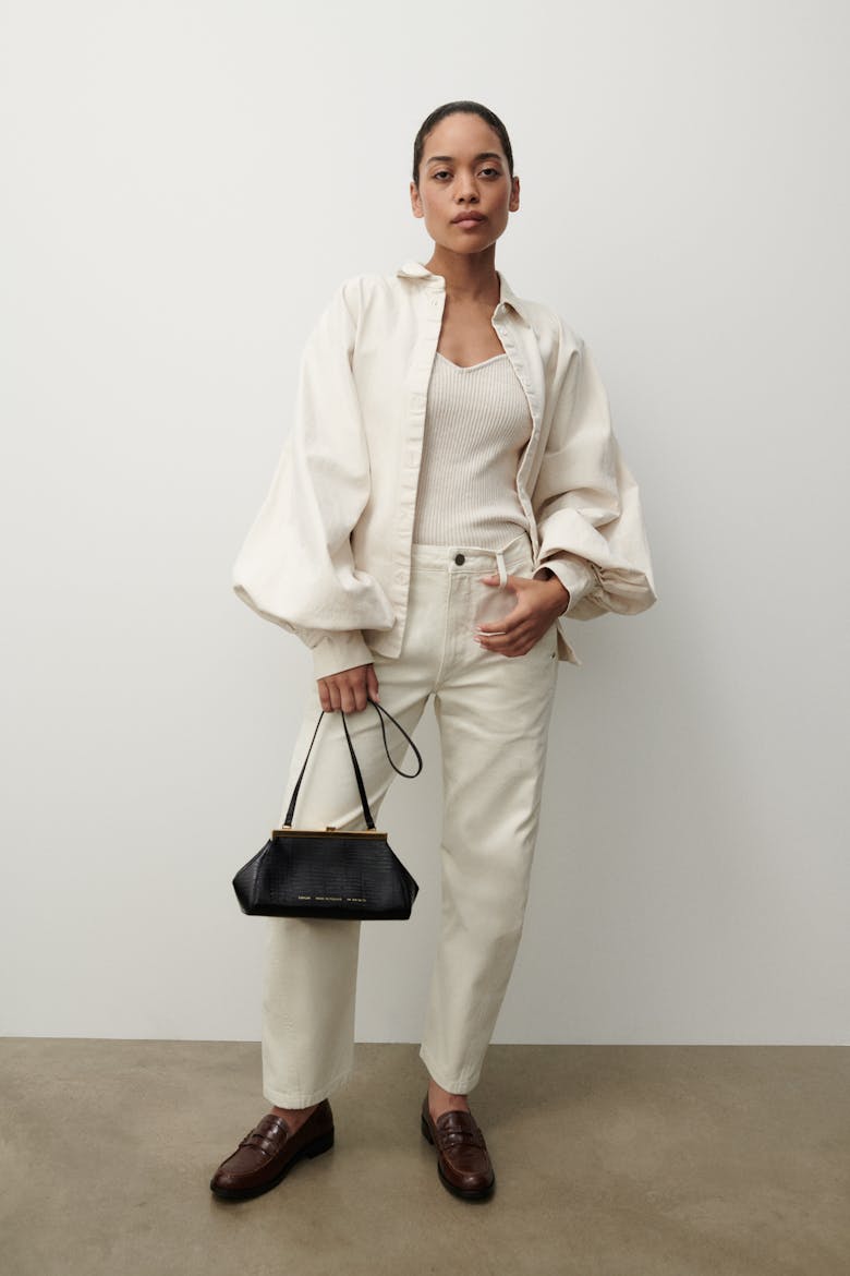 Structured but soft bag closed with a decorative golden clasp made of black lizard-embossed leather. Inspired by purses from the 1940s and 50s, but with a modern touch. Perfect as an evening accessory. Can be worn across the body, or on the shoulder.