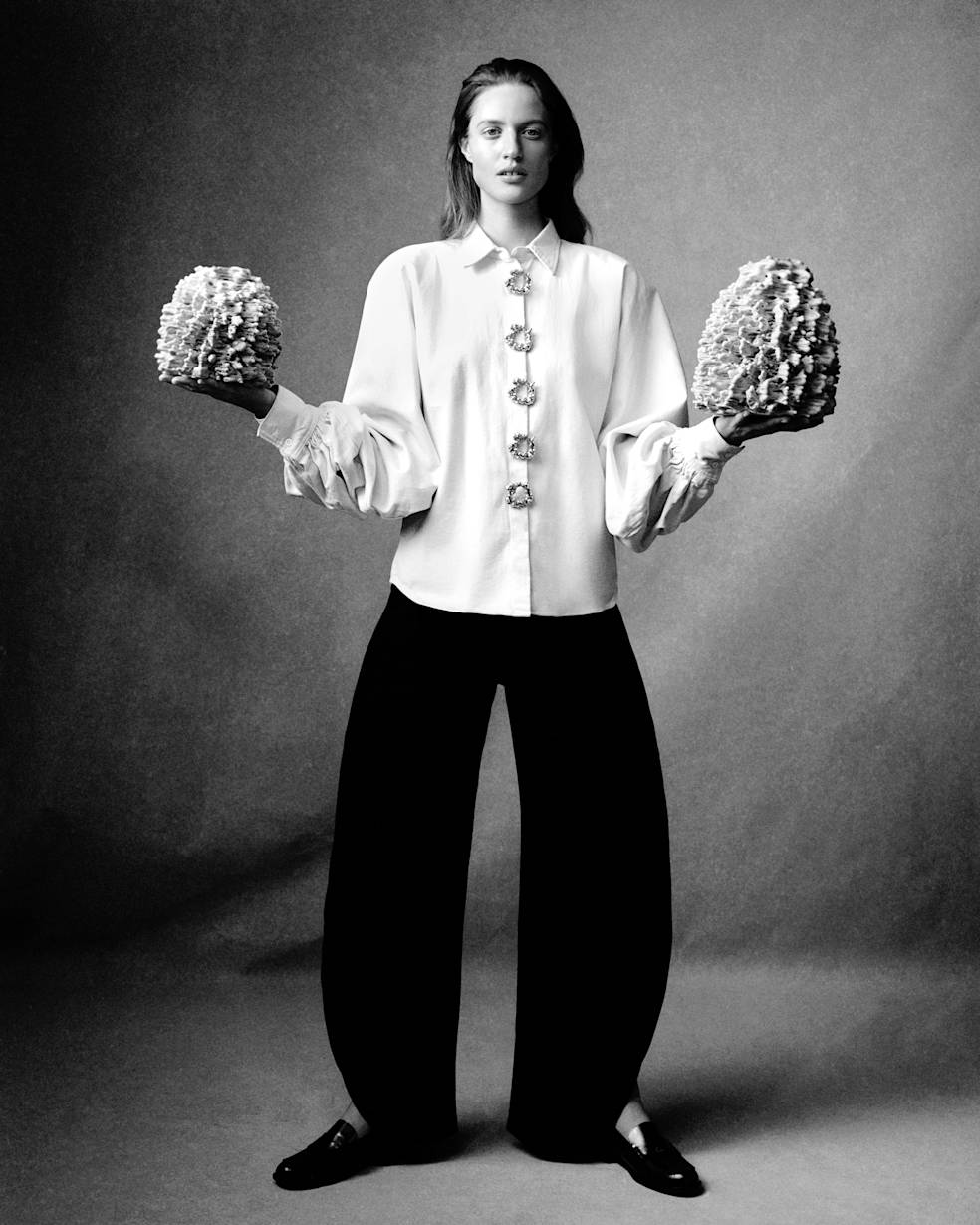 The shoes are handmade in Italy, in a small, family-owned workshop, where the craft was developed over many generations.The collections are released in limited series, with each bag and shoe hand-stamped with its series number.