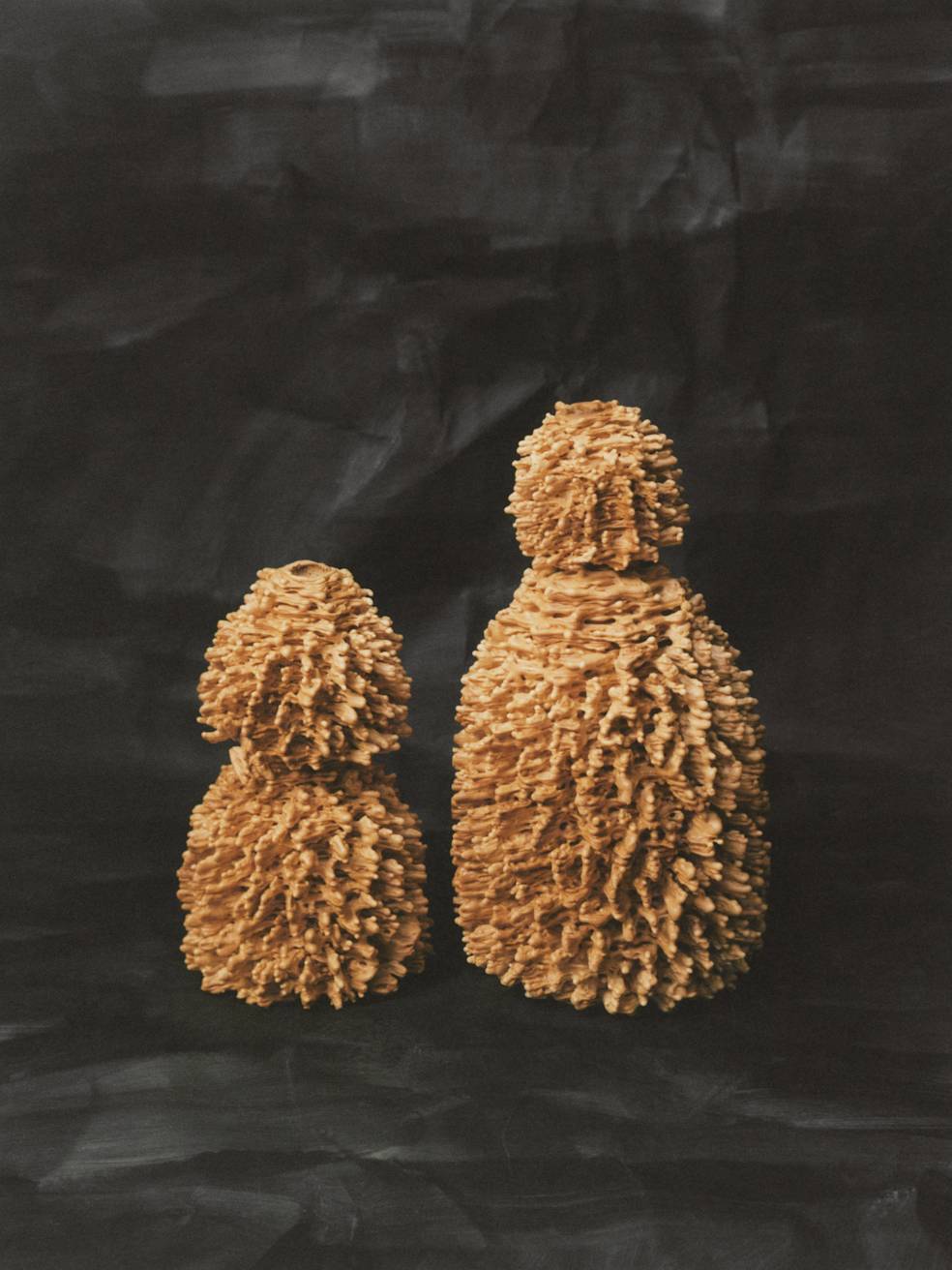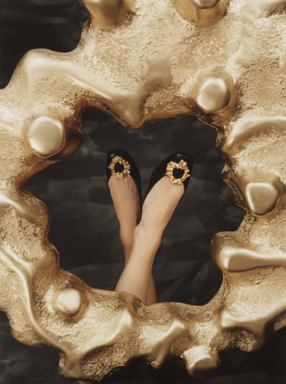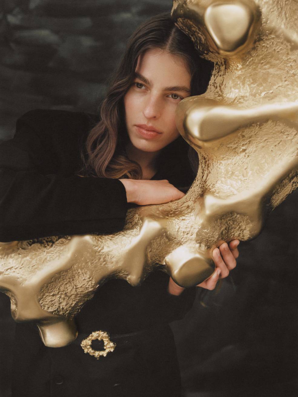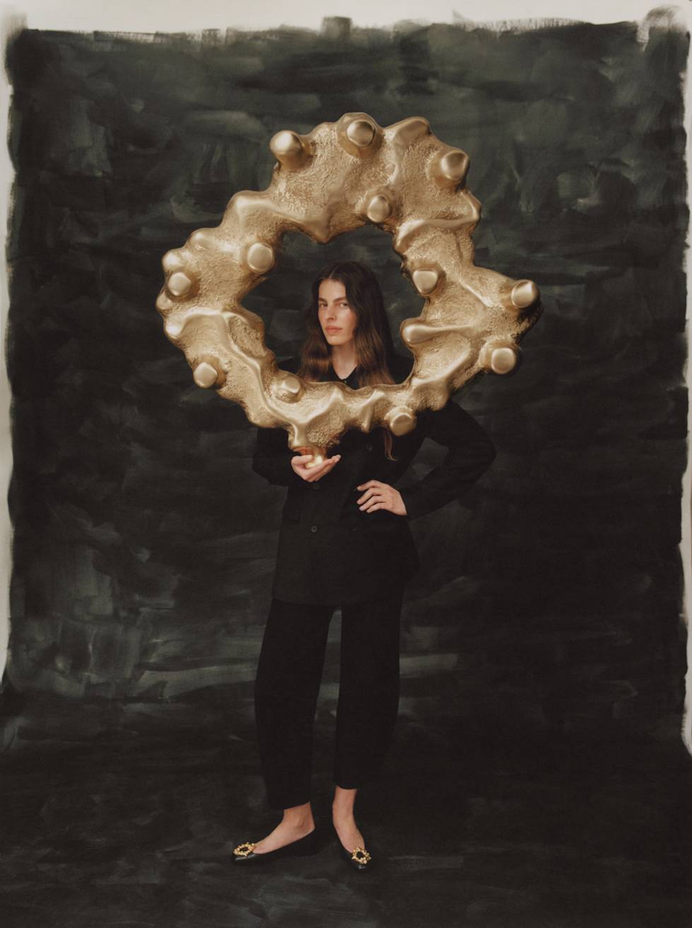 The leading motif for this mini collection is a decorative golden clasp. Its organic form recalls a traditional layered cake baked on a spit over an open fire in eastern Poland. Called “sękacz” (“knotted”, because of its tree-like rings), the cake has a long history on Polish lands, prepared for special occasions, holidays, and weddings at least since the end of the 15th century. Thanks to its unique, ornamental shape, it served as an adornment for every table.